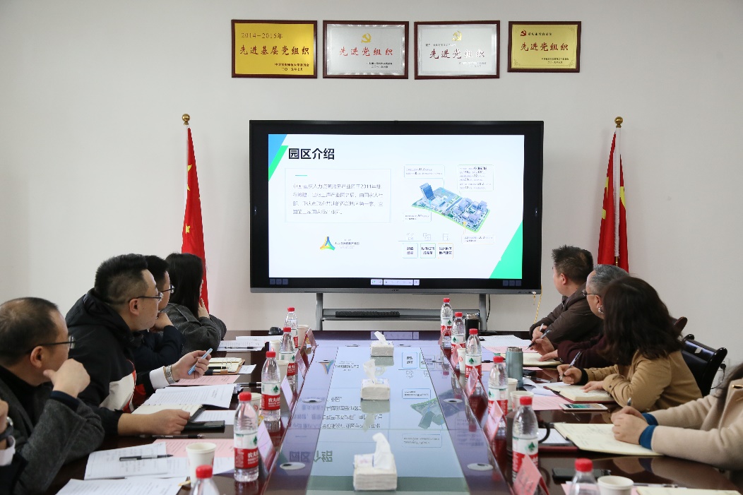 邓君部长就园区的地域分布,平台建设、与高校签订战略协议等基本情况进行了介绍。中心副主任魏建对产业园的规模、职能情况、发展情况等方面作了相应补充,并表示,产业园的发展壮大离不开高校,与高校开展相应合作是产业园促进人才发展的强烈需求,希望在园区和学校的合作之下,促进人才引进工作的顺利进行,解决大学生毕业前实习见习工作,促进大学生就业创业工作的顺利开展。