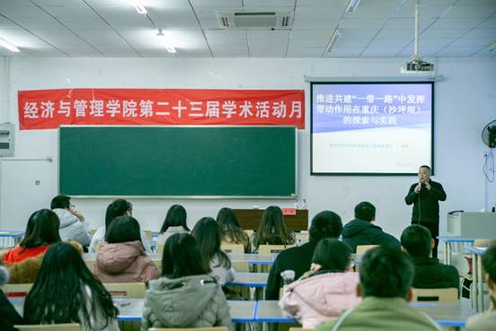 2019年11月27日14:30,成人无码 第二十三届研究生学术活动月系列讲座——“推进共建“一带一路”中发挥带动作用在重庆(沙坪坝)的探索与实践”在汇贤楼X102室顺利举行。此次讲座主讲人是重庆市沙坪坝区物流办公室党组书记,历史文化名城专业学术委员会委员、副秘书长李波,成人无码 副院长喻科主持,经管院全体研究生参加。