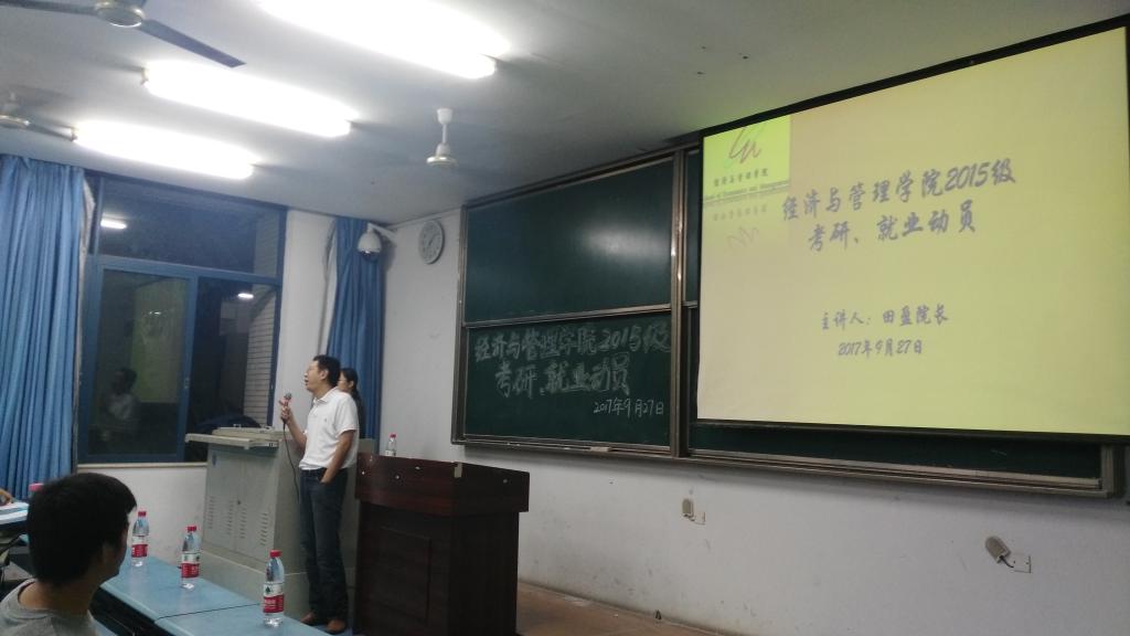 针对2015级五个专业的学生分别组织召开五场考研、就业动员会。2017年9月26日晚7点,15级金融工程专业动员会于学院楼101教室如期举行,成人无码
