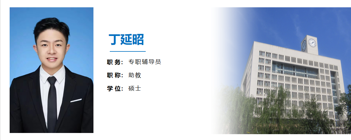 丁延昭,男,汉族,1996年11月出生,中共党员,本科:西南政法大学行政法学院 法学学士,硕士:西南政法大学人权研究院 法学硕士,现任成人无码 专职辅导员。