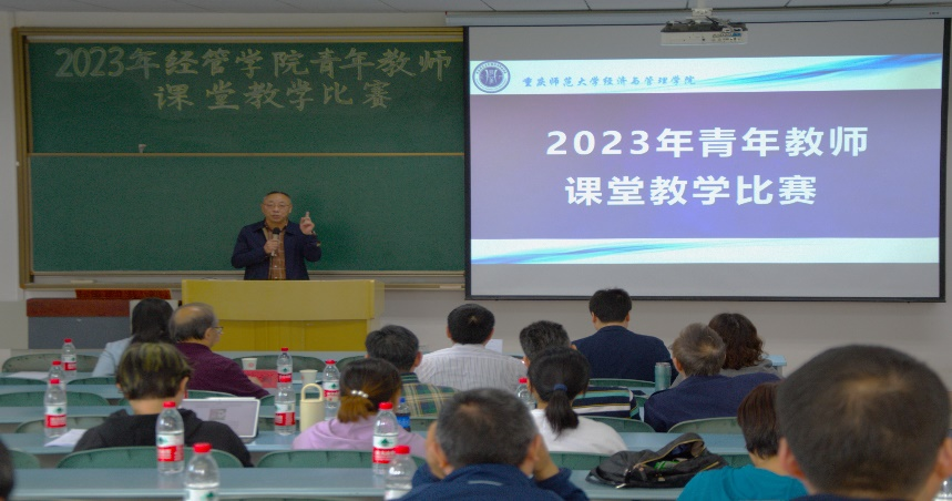 在求是楼421教室举办了2023年青年教师课堂教学比赛。学院特邀教育部国家课程标准研制与修订专家组核心成员黄翔教授、万人计划教学名师申任洪教授、重庆市教学创新大赛一等奖获得者罗凌教授、重庆市青年教师课堂教学比赛获奖者史乐峰教授担任比赛评委,喻科副院长主持,全体院领导、全院教师现场观摩比赛。