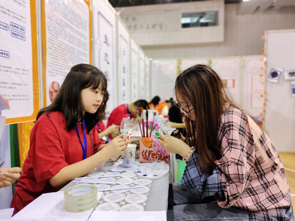 在穗岁丰年展台推出了四个项目。“拯救燃烧的资源”项目吸引不少参观者到展台前一起动手制作精美的手工艺品,将废弃资源重新变得鲜活起来;“双河农家乐”项目旨在充分发挥乡村旅游资源作用,进一步带动农村经济发展,众多参观者在现场品尝了茶叶、核桃等特色农产品;“晓老乡农产品全方面培训台”项目采用现场直播的方式推销各类农产品,在直播中举办的“无表情吃柠檬”带货小游戏更是吸引了不少挑战者前来体验农产品的风味;“学院教师科学研究服务国计民生”项目则充分体现了成人无码