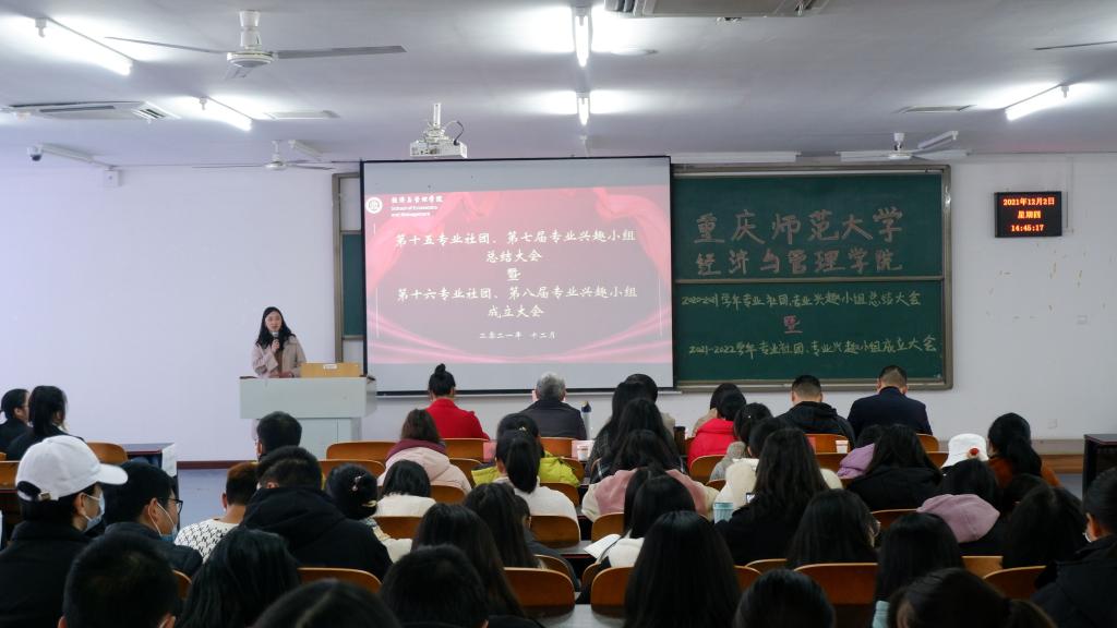 2021年12月2日下午成人无码 于特教楼T2315隆重重举行第十五届专业社团、第七届专业兴趣小组总结大会暨第十六届专业社团、第八届专业兴趣小组成立大会成人无码 党委副书记任源钢专业社团、兴趣小组指导老师、成长导师、组长及成员代表参与本次大会由分团委书记张莉主持。
