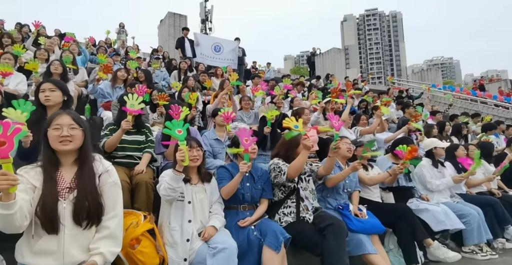 观众席上,掌声雷动,划破长空。声声助威,拉满运动氛围,激昂的呐喊声是他们发自内心的欢呼。尽管处于烈日之下,同学们依旧热情高涨,振臂高呼,鼓声阵阵,为经管健儿们注入无穷的力量和动力。当经管健儿冲过终点线的那一刻,他们放声高呼,为之自豪,展现出同学们的集体主义精神。