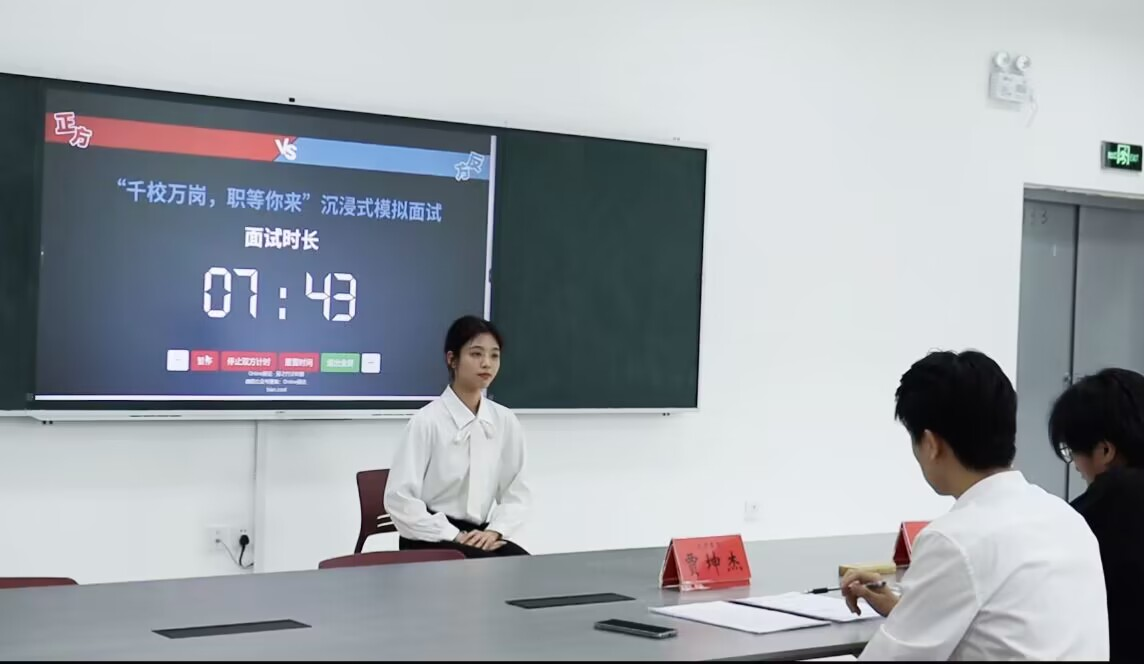 为全方面提高同学们的面试表现,增强面试自信心,熟练掌握面试技巧和过程,2023年4月20日15时,成人无码 于求是楼133举办“千校万岗,职等你来”沉浸式模拟面试比赛。由主席团成员贾坤杰、文体部负责人龚洲凯两位同学模拟公司人力,并担任评委。