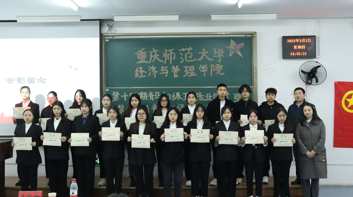 于特教楼2113室开展第十四期青马初级班结业仪式暨第十五期青马初级班开班仪式。会议由马列部张琪主持,特邀学院党委副书记李青松、团委书记张莉、2021级辅导员唐艺珊、2022级辅导员李威出席,第十四期青马初级班优秀学员、第十五期青马初级班全体学员悉数参加。