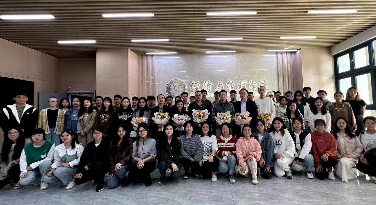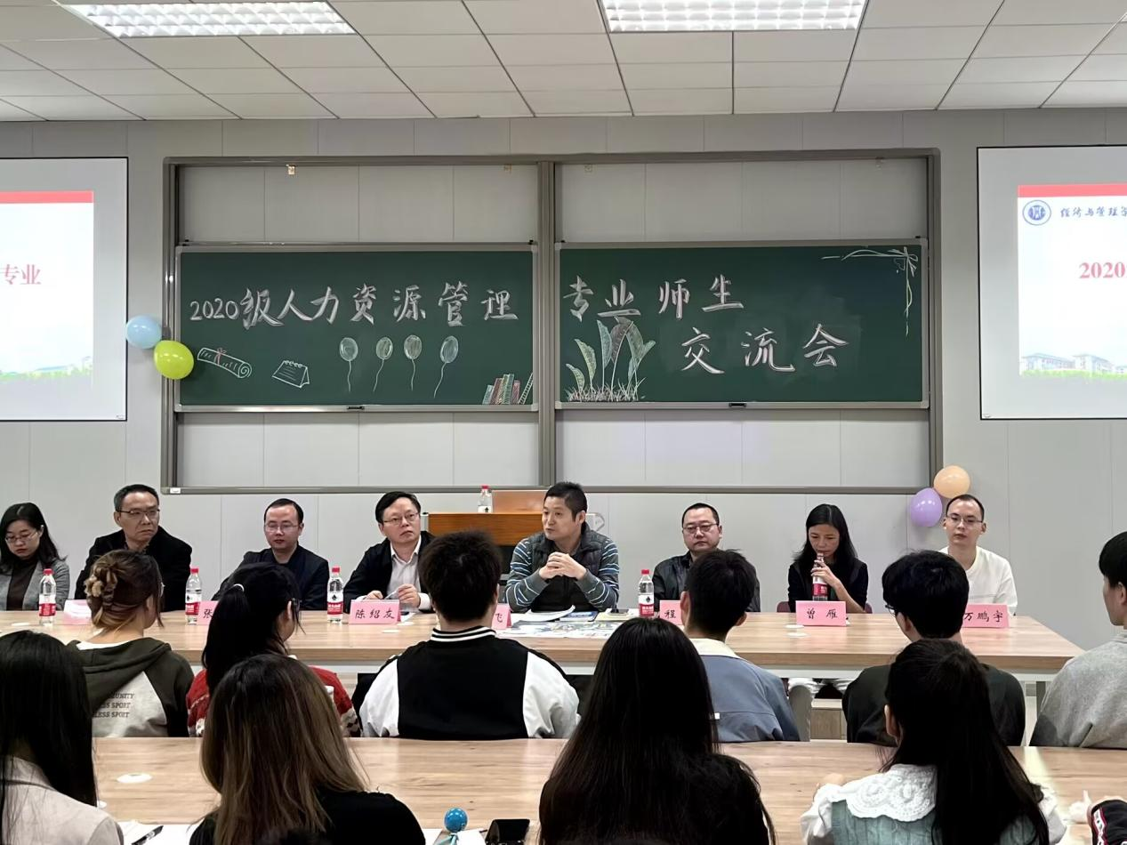 人力资源管理专业指导教师万鹏宇、曾雁、程支中、周鹏飞、陈绍友、张德钢、何永强、穆娜娜以及全体人力资源专业学生齐聚一堂,围绕专业问题、未来发展方向展开畅谈分享。