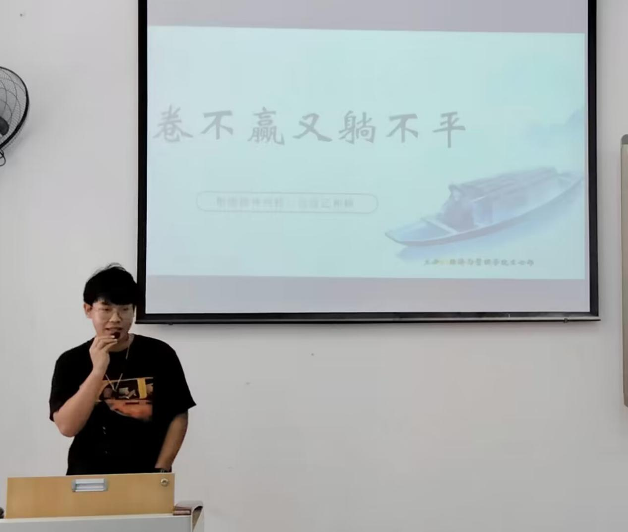 活动在主持人精彩的开场白中拉开帷幕,紧接着他带领同学们一步步去探索了什么是“精神内耗”;在结束了充满欢声笑语的游戏后,同学们积极地分享了身边“内卷”或“躺平”的故事;同时踊跃的发表了怎样拒绝“精神内耗”的独特见解。整个活动中,同学们主动分享学习生活,大方与主持人互动,进一步展现了当代青年自信乐观的良好精神风貌。