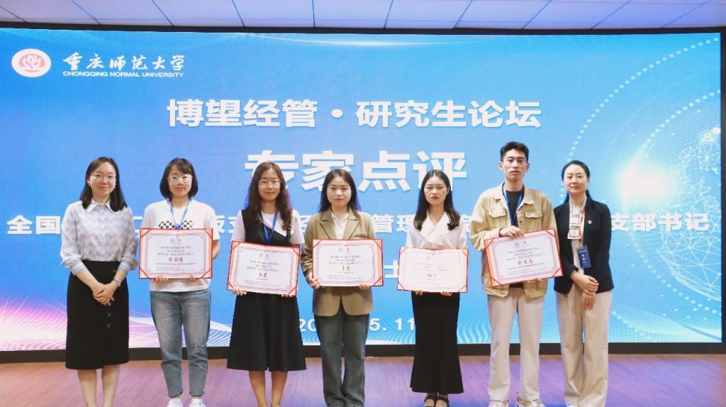 任缙教授对各位研究生分享的研究与论文写作方法予以点评,并高度赞赏了参会研究生的学术功底与学术研究成果。论坛最后,钟敏书记与任缙教授为5位分享者颁发证书并合影留念。
